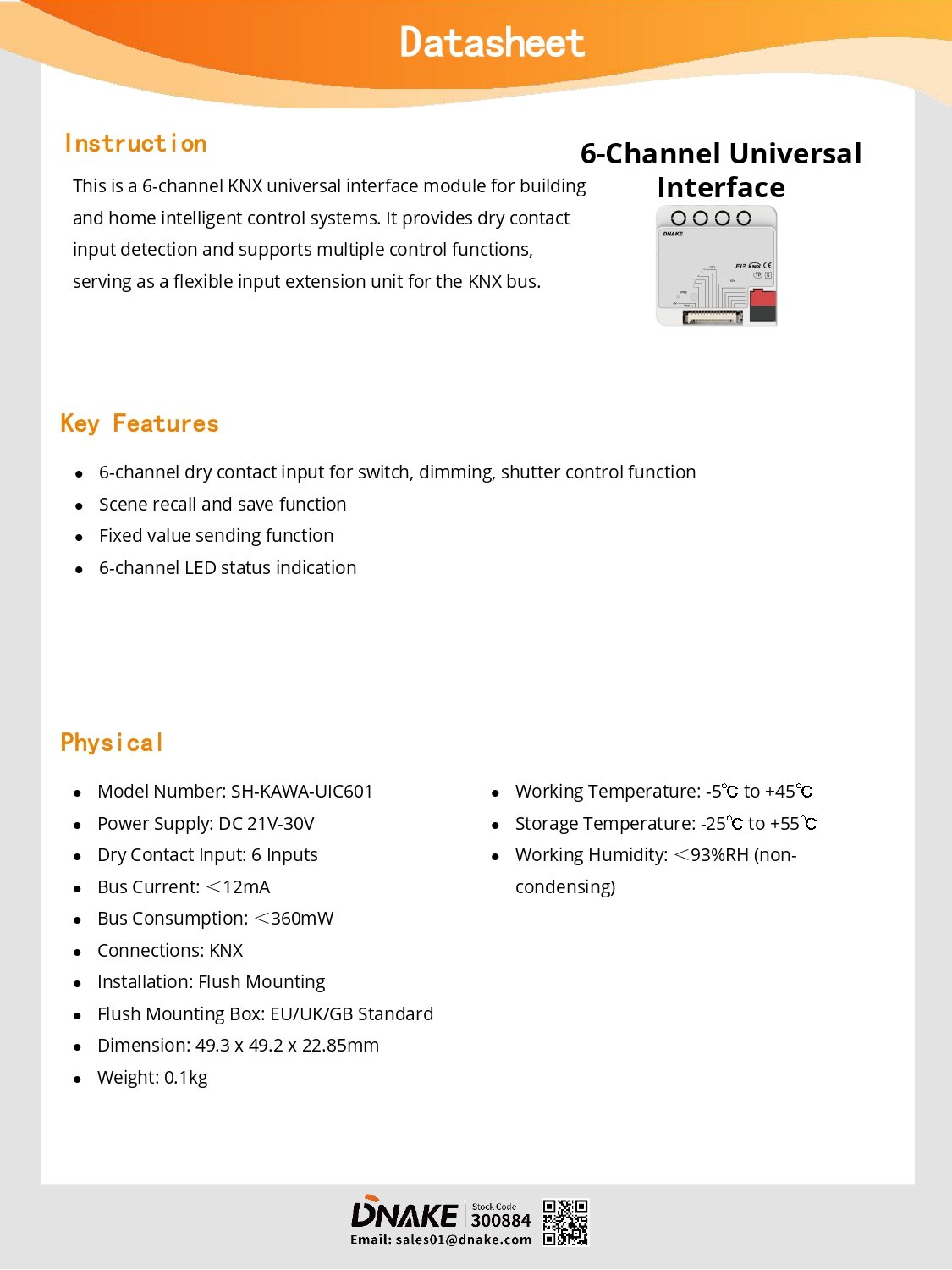 Son format encastrable et sa compatibilité avec les boîtes de montage standard EU/UK/GB en font une solution discrète et facile à installer derrière un appareillage mural, dans les projets résidentiels, hôteliers ou tertiaires. Compacte, fiable et polyvalente, cette interface constitue un excellent choix pour les projets KNX nécessitant davantage de points d’entrée. Découvrez également l’interface 8 canaux, toute la gamme DNAKE et nos solutions KNX au Maroc.