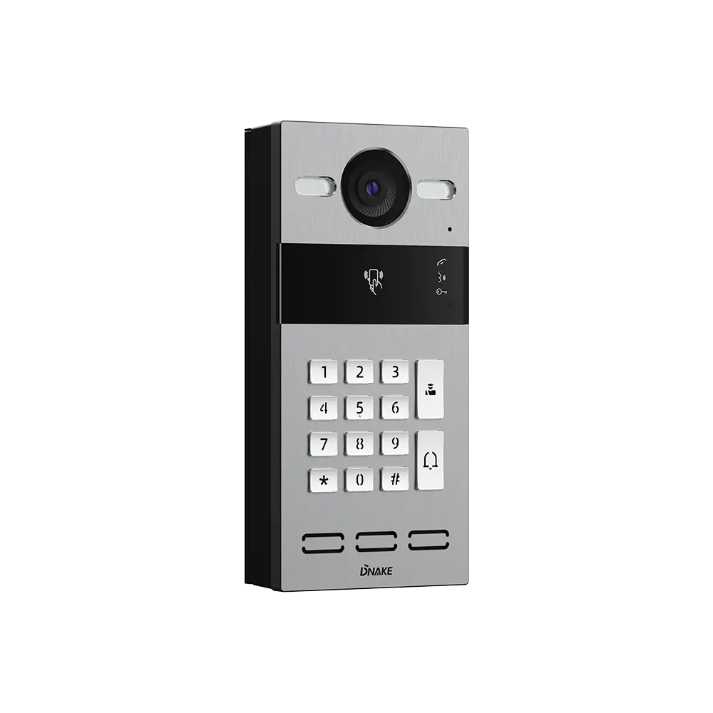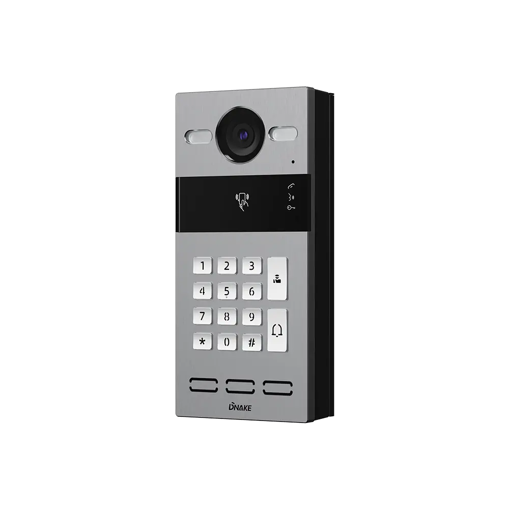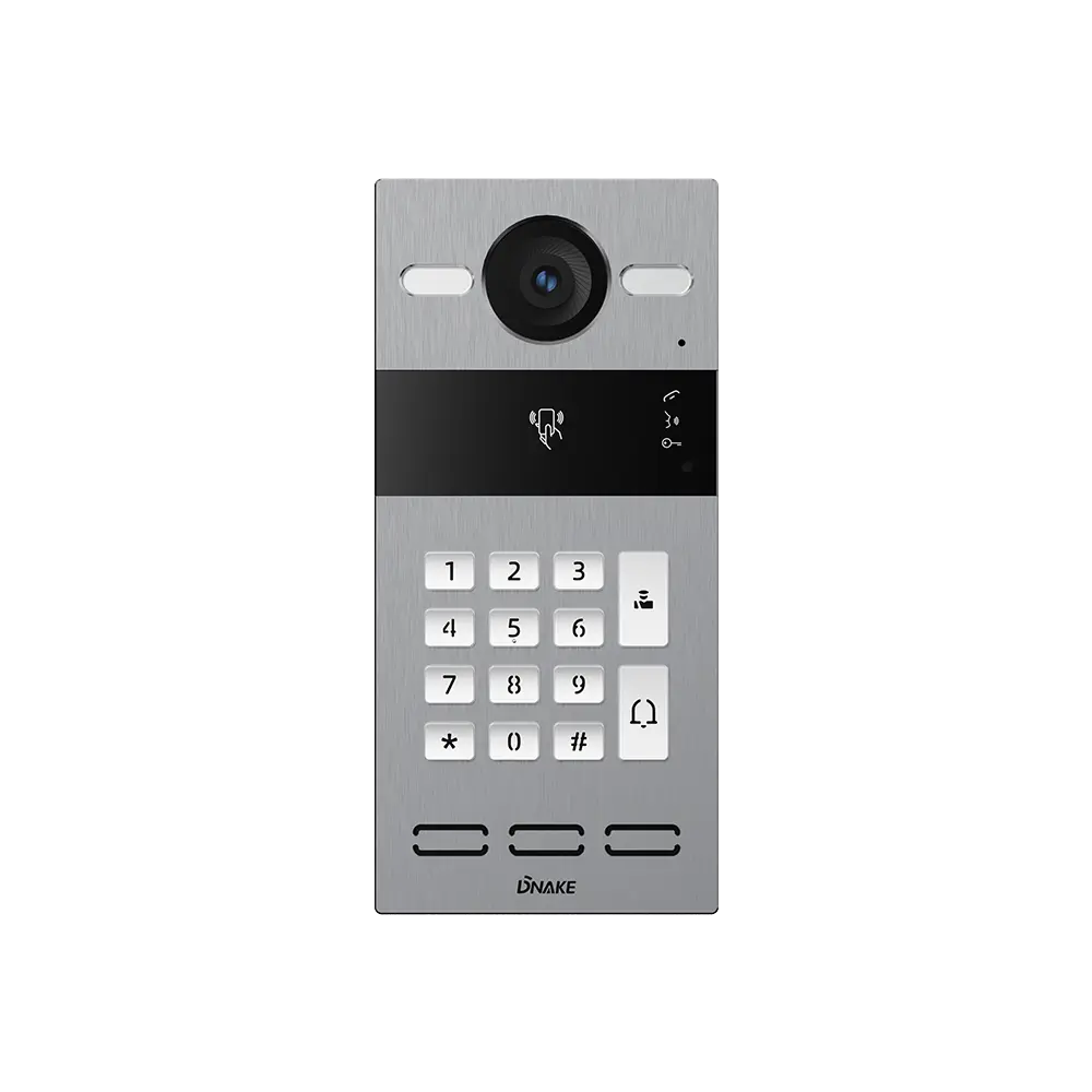 Le DNAKE S213K est une platine de rue IP (SIP) avec clavier, caméra 2MP et accès par carte + code, conçue pour les villas et petites résidences qui veulent répondre en vidéo et ouvrir la porte à distance depuis un moniteur intérieur ou une application mobile (selon configuration).
